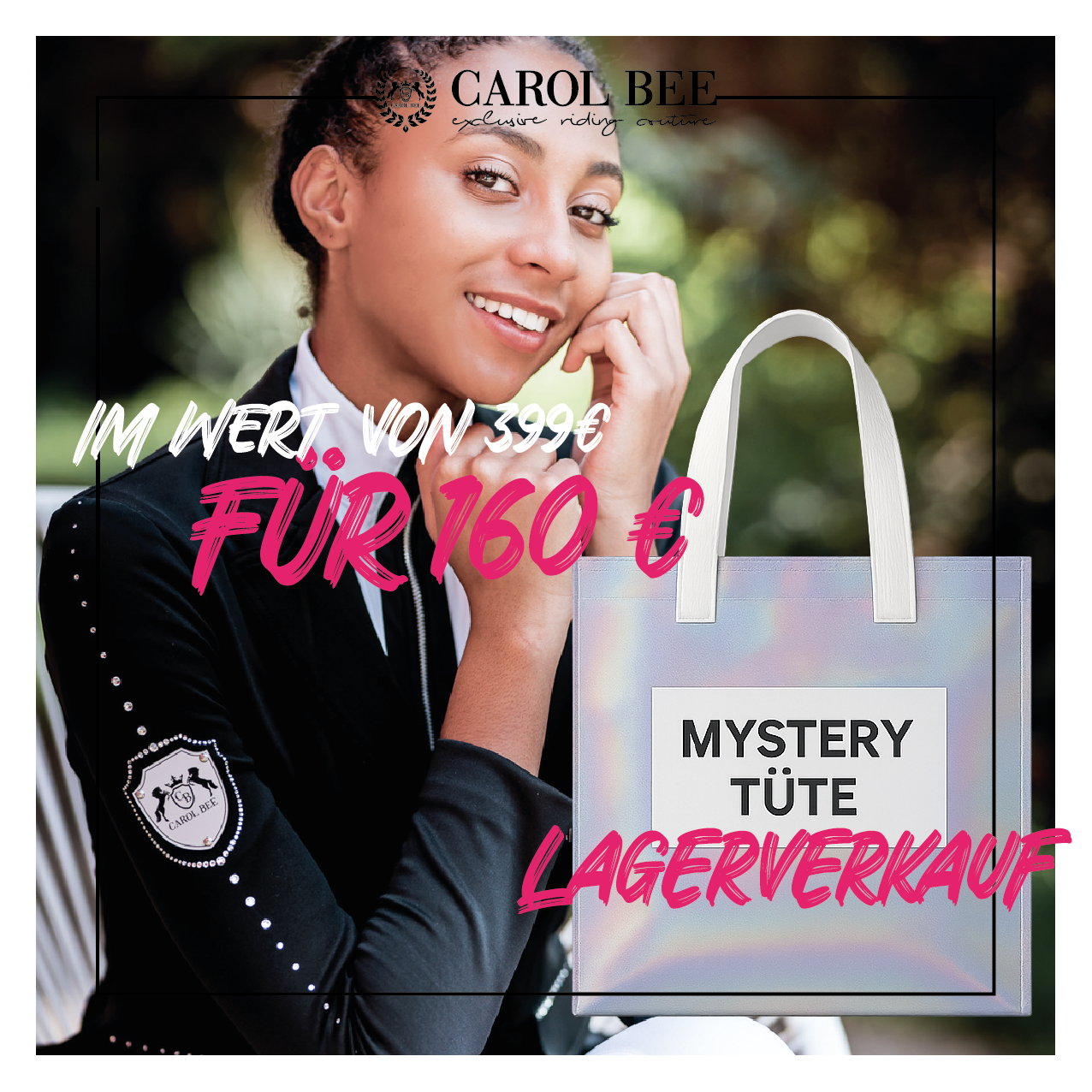 Mit unserer exklusiven Mystery Tüte sicherst du dir hochwertige Reitmode im Wert von bis zu 399 € – und das für nur 160 €.